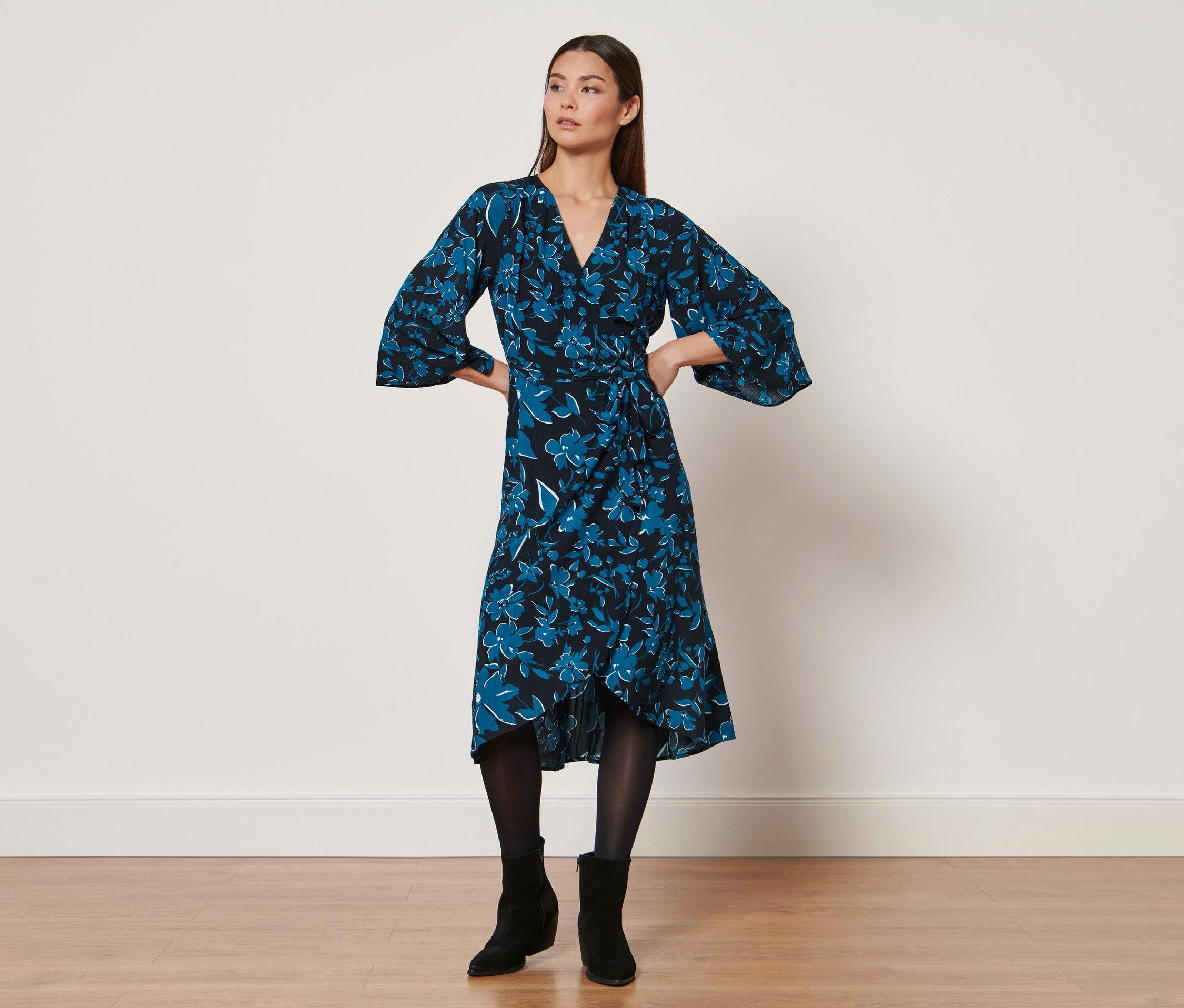 Tchibo - Kleid mit Print - Damen - Gr. 40 - dunkelblau/geblümt